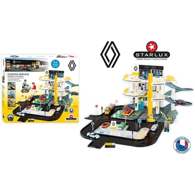 Grâce à ce garage et cette station-service Renault très complète, tu peux laisser place à ton imagination et créer de nombreuses histoires. Un pneu crevé ? Rends-toi le plus vite possible au garage. Pense ensuite à t’arrêter à la station-service le temps d’une pause et n’oublie pas de faire le plein d’essence pour ne pas tomber en panne ! Les pièces conçues en France et fabriquées en Europe sont très résistantes. Offrez à vos enfants un garage de la marque emblématique : Renault.