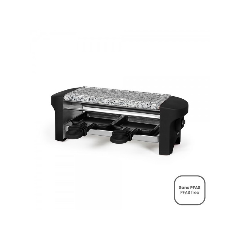 DOC156N - appareil à raclette 2 personnes 350w noir - Appareil à raclette 2 personnes de Livoo DOC156N. Puissance de sortie de 350 W, idéale pour faire fondre le fromage rapidement et uniformément. Plateau en granit amovible, parfait pour cuire les aliments pendant que le fromage fond. Facile à ranger et à utiliser grâce à sa taille compacte, ses poignées résistantes à la chaleur et son bouton marche/arrêt.