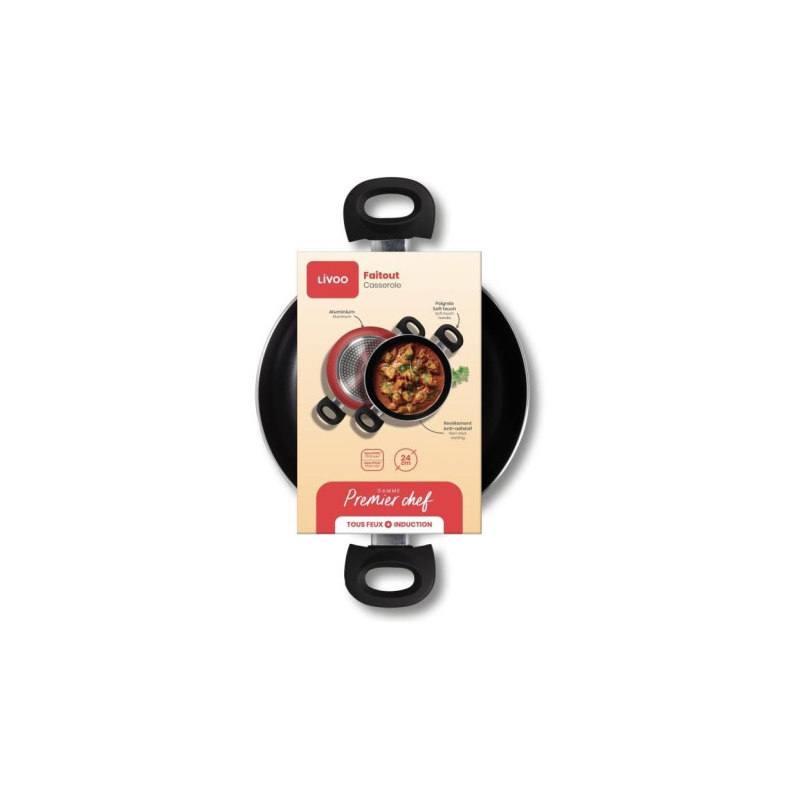 Le faitout LIVOO MEP150R de 24 cm est conçu pour une cuisson optimale. Son revetement intérieur antiadhésif sans PFOA ni PFOS garantit une cuisson sans accrocs. Les poignées en silicone soft touch résistant a la chaleur et le couvercle en verre trempé avec aérateur vapeur ajoutent a sa praticité. Compatible avec tous les feux, y compris l'induction.